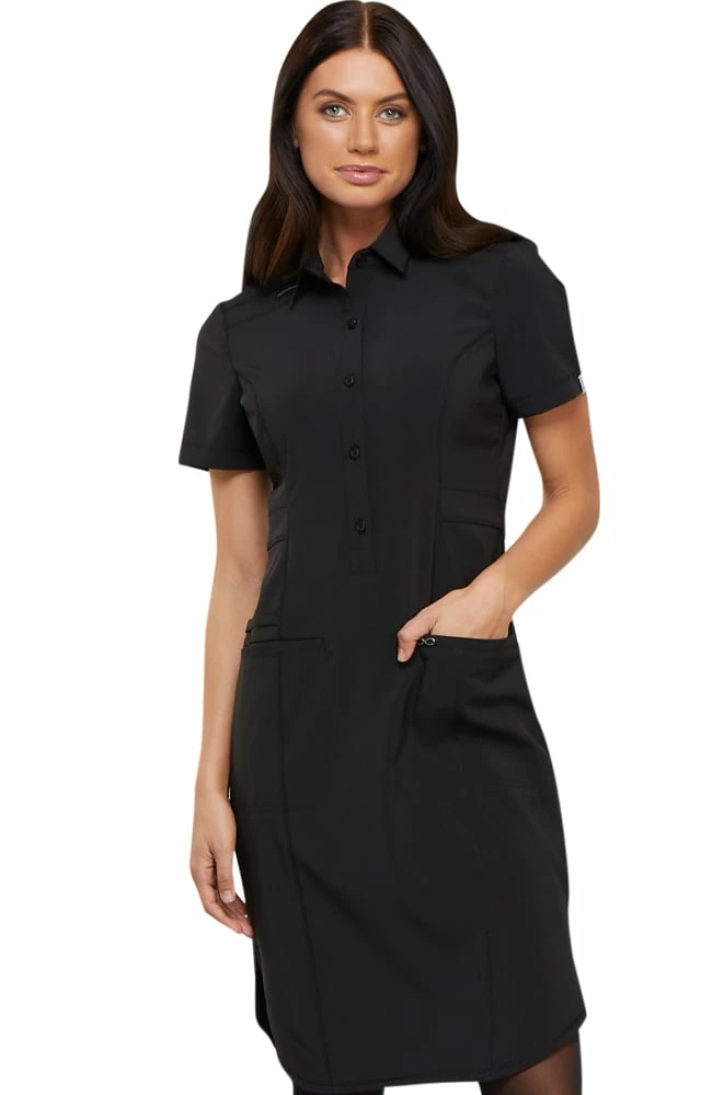 From glass to graduation and beyond, this Infinity by Cherokee Women’s 39″ Button Front Scrub Dress is a modern update on the classic. Both nurses and other specialties will feel confident and professional wearing this contemporary style.