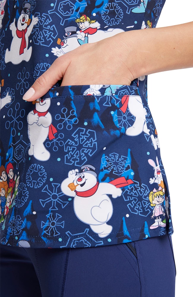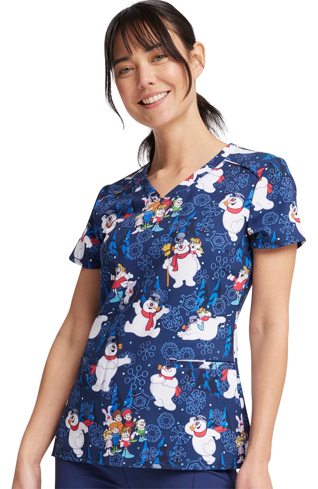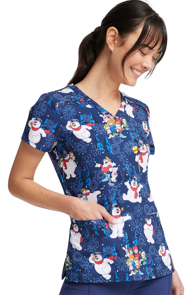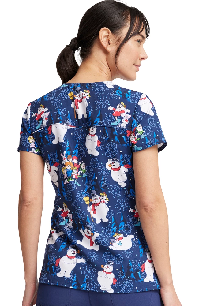 Spread classic holiday cheer when you wear the Tooniforms by Cherokee Women’s Stay Frosty Print Scrub Top. The snowflake background adds an extra festive touch to this charming top.