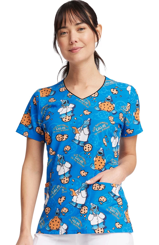 C is for cookie, and they’re all over the irresistible Tooniforms by Cherokee Women’s Two Cookies Print Scrub Top. Three pockets give you plenty of space for your essential gear (and maybe a cookie or two).