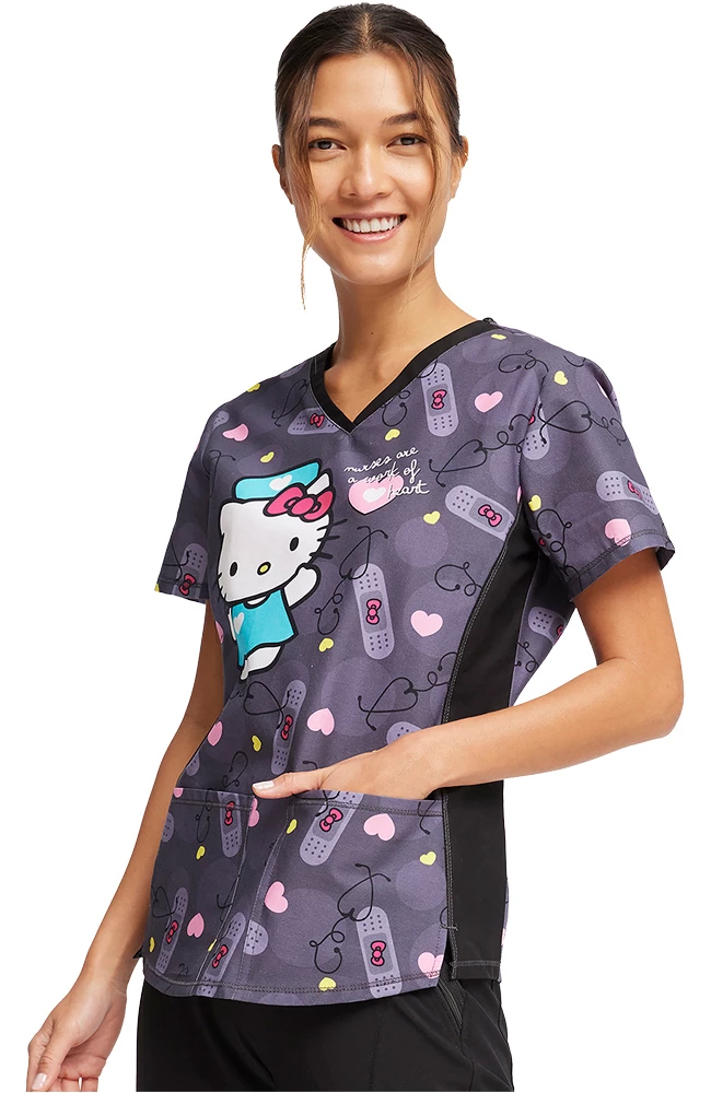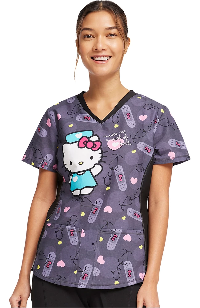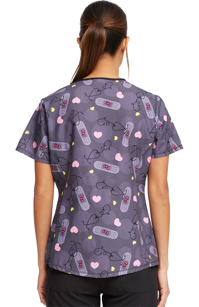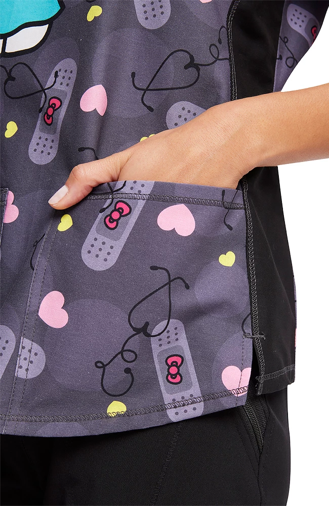 Nurse Hello Kitty is here to help on the Tooniforms by Cherokee Women’s Working Heart Print Scrub Top. This sweet-as-can-be scrub top has an adorable allover bandage print, plus figure-flattering side panels and two pockets for your gear.