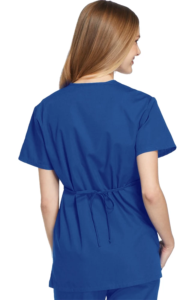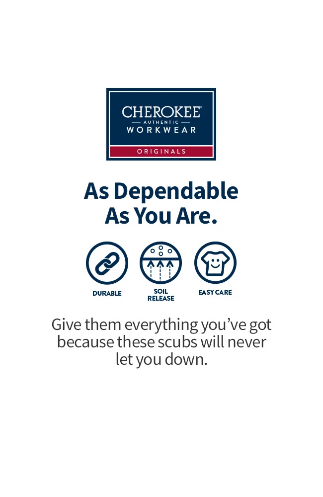 Cherokee Workwear Originals scrubs are comfortable, durable, and designed to last. This mock wrap tunic has an easy fit with an adjustable tie back. Features two patch pockets, one cell phone pocket. Made of soil-release poly/cotton.