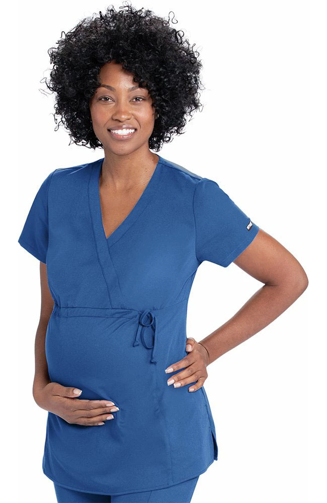 The Grey’s Anatomy Classic Women’s Lilah Maternity Solid Scrub Top grows alongside you, with an adjustable front tie and elastic panels. Love the fit and comfort stretch of this luxurious fabric.