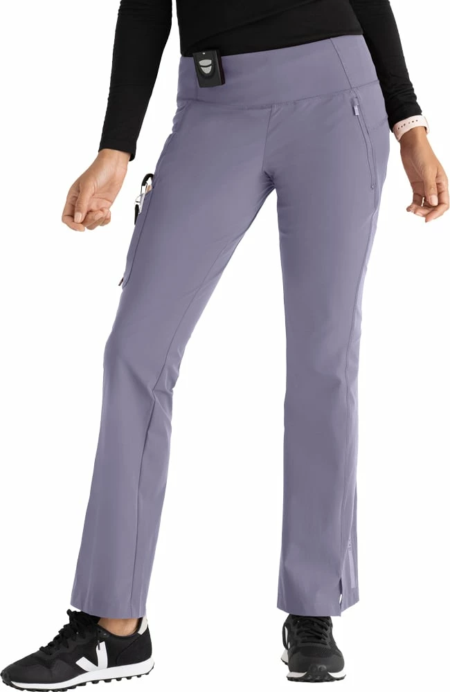 Find your zen with the functionality and comfort of the Edge by Grey’s Anatomy Women’s Nova Yoga Scrub Pant. This sleek, stretchy yoga pant features an adjustable waist and 3 built-in zipper pockets for secured storage.