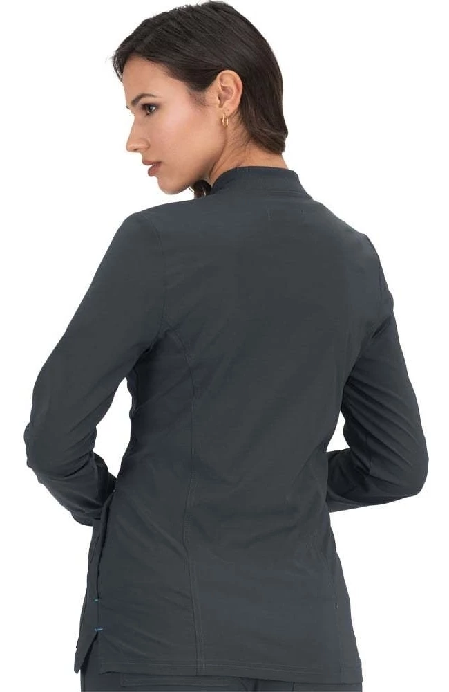 The koi Basics Women’s Andrea Zip Front Solid Scrub Jacket features flattering and utility details. Stay cozy in cool medical settings with this sleek scrub layer.