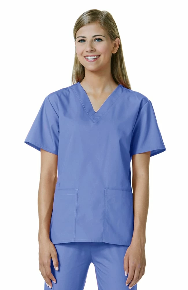 You’ll find a place for everything when you wear the Maevn 1016 V-neck top. Start with the two front patch pockets, the left front pocket includes a hidden smart phone pocket. The right front pocket conceals a three-part accessory loop. Set-in sleeves ensure easy movement. Shoulders and pockets are double stitched to ensure this fashionable top lasts and keeps its shape while you’re hard at work. The fabric is a comfortable blend of polyester and cotton.