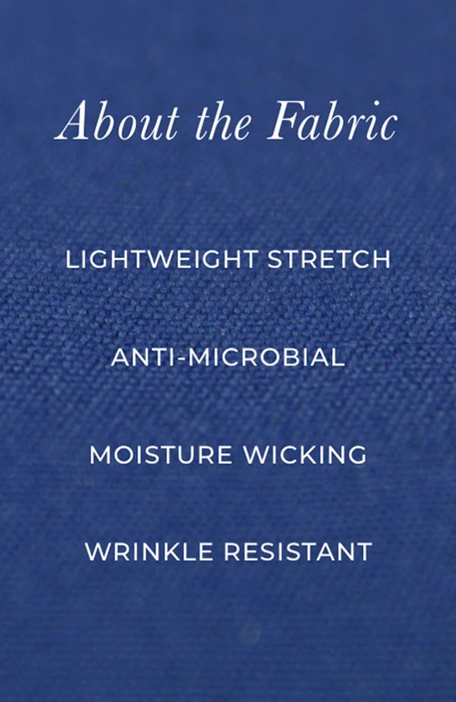 - Lightweight, antimicrobial stretch fabric