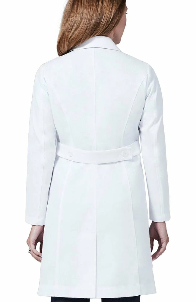 A shawl collar softens the Medelita Women’s Emma W. Classic Fit 36″ Lab Coat for a graceful style. Princess seaming and a loose back belt create flattering shaping details for a professional yet feminine look.