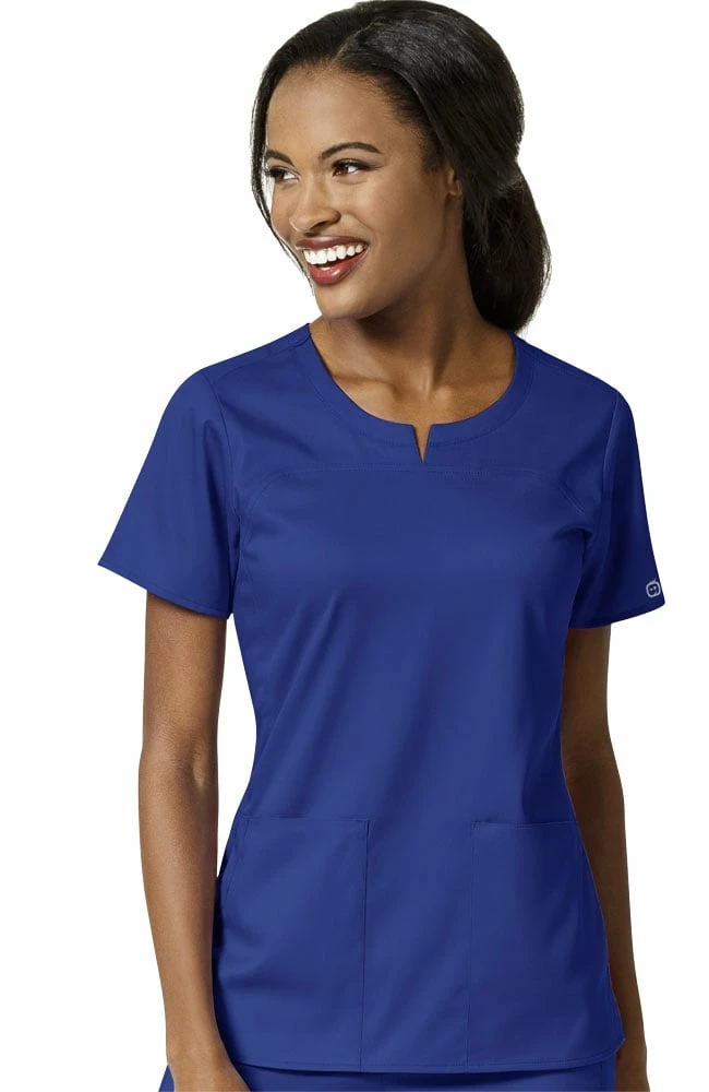 Add a subtle touch of class to your look with the PRO by WonderWink Women’s Notched Neck Solid Scrub Top. This sweet but simple notched neckline is an impeccable look that is sure to step up your professional appearance in any medical setting.