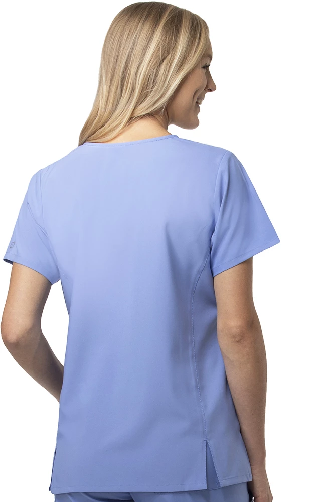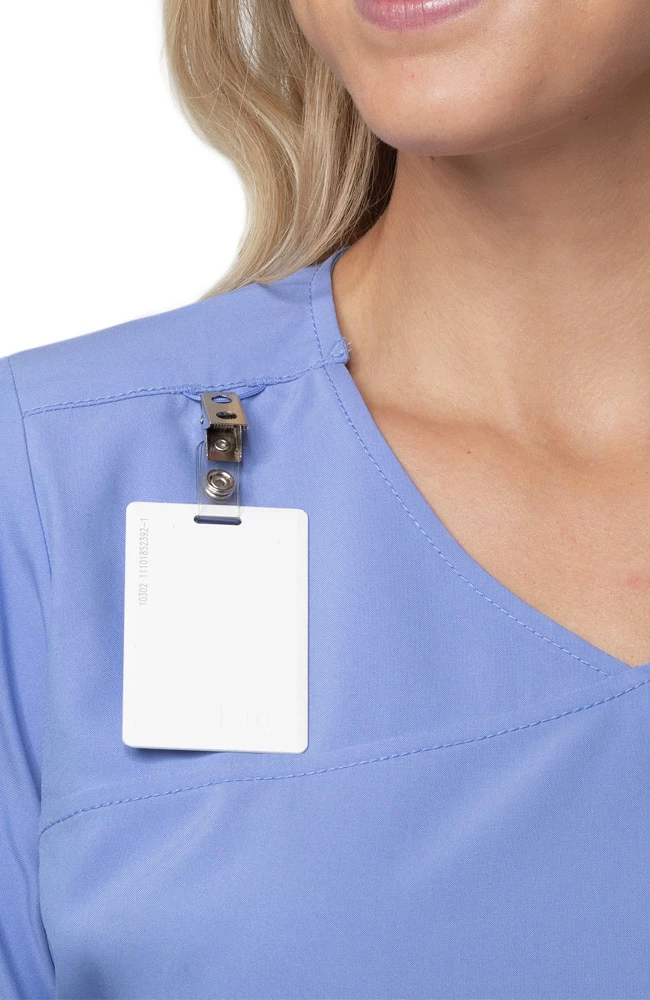 Keep everything you need on your person, with the W123 by WonderWink Women’s Mock Wrap Solid Scrub Top. This utilitarian design allows you to keep your ID badge, pens, notebook and cell phone all in one place.