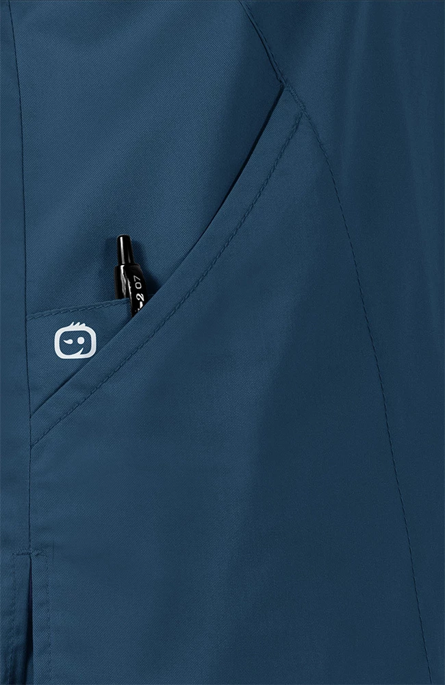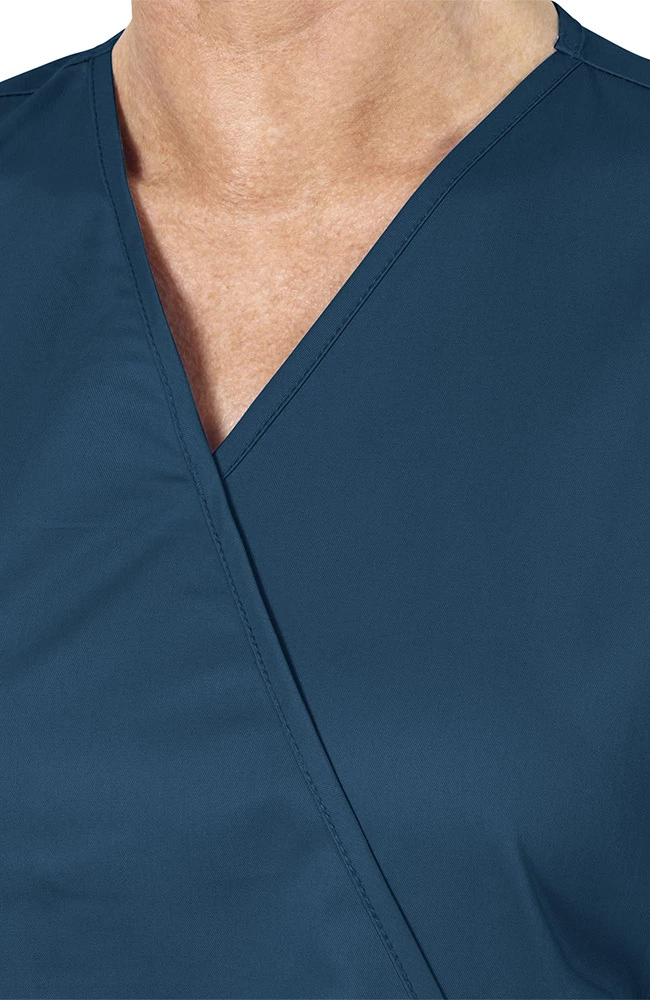 The Women’s Mock Wrap Tops have style lines that give additional shape to the fit of the top. The 102 mock wrap solid scrub tops by WonderWink WonderWORK include two slash pockets with a hidden cellphone pocket and vented sides that give extra ease to the wearer’s active day.